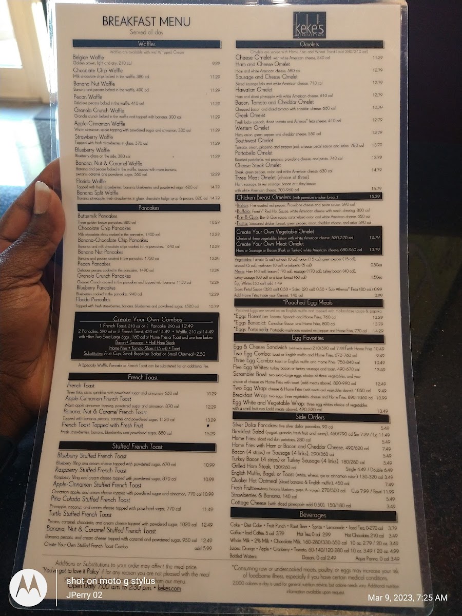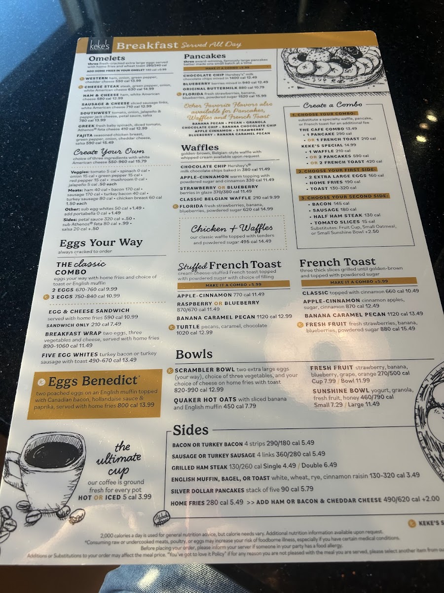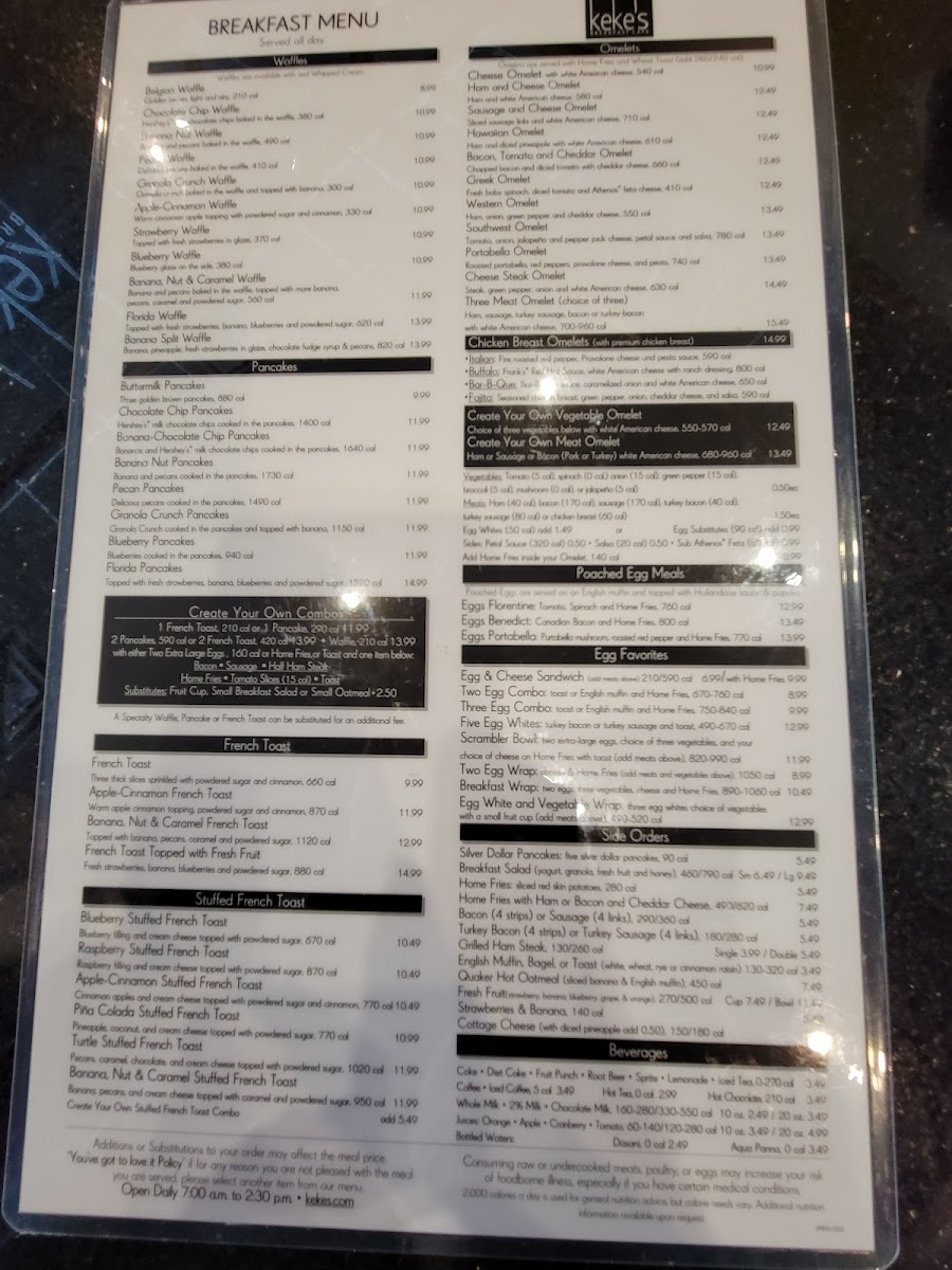 Keke's Breakfast Cafe takes pride in its extensive menu featuring a mouthwatering selection of dishes. Picture yourself indulging in their Belgian waffles, available with delectable toppings like warm apple cinnamon, fresh strawberries, or even a twist of chicken and waffles, combining sweet and savory in every bite. The classic options are just as tempting, boasting flavors that will leave you wanting more.